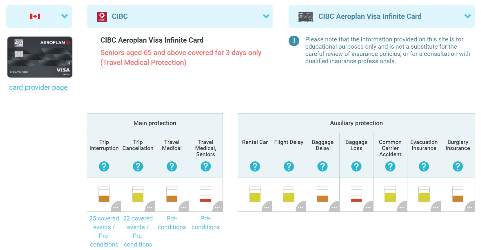 Highly visual overview of all the travel insurance policies your agency can sell and the ability to compare travel insurance protection on credit cards