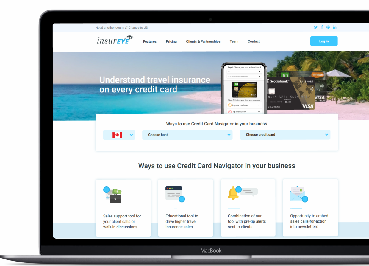 Our travel insurance platform combines travel insurance insights from all relevant sources: travel protection that your clients might have on their credit card, travel insurance policies that your agency can offer and various waivers offered by travel suppliers. Any travel insurance advisor can use this information to advise clients about the best protection options and drive higher travel insurance sales.